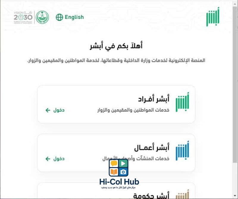 - الدخول إلى منصة أبشر للأفراد: https://www.absher.sa